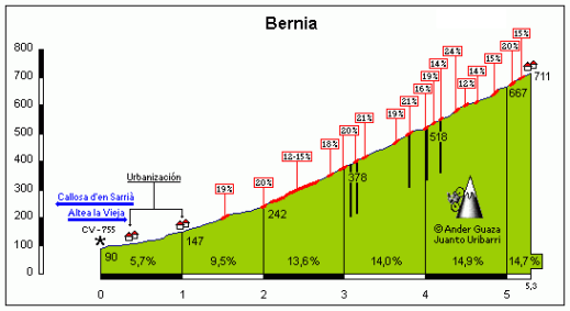 4ª ETAPA (Sábado 8 febrero): CALP – ALTEA / SIERRA BERNIA (170 km). Perfil oficial / Rutómetro
