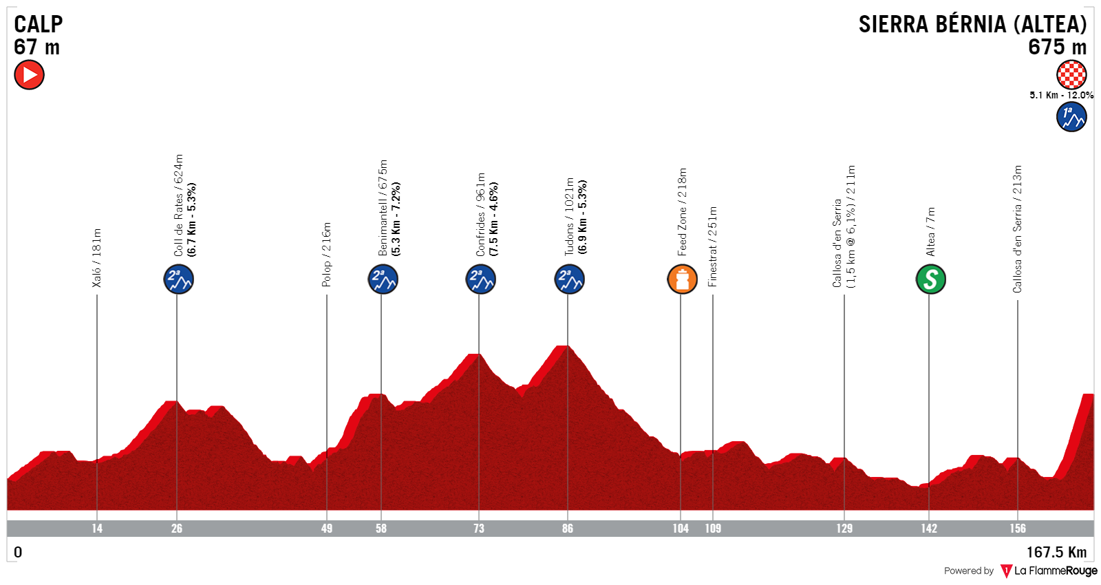 4ª ETAPA (Sábado 8 febrero): CALP – ALTEA / SIERRA BERNIA (170 km). Perfil oficial / Rutómetro