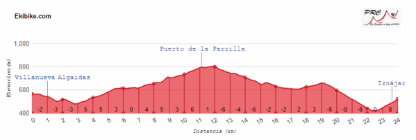 El recorrido, más largo que dificultoso, cuenta con el paso por varios altos de tercera categoría, aunque de poco fuste. Destaca el final, donde se enlaza el Puerto de la Parrilla, en general muy tendido, con el repecho final de 1,3 km al 7,5% por las calles de Iznájar, típico pueblo andaluz que se acuesta sobre un cerro.