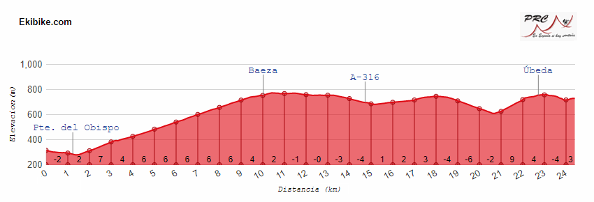 La meta, como en días anteriores, está colocada en cuesta, tres finales «uphill» de tres, si bien en este caso es una subida muy corta … tras el descenso de un repecho duro con el que se accede a Úbeda, coronándose a solo un km y medio de meta. En definitiva, territorio acotado para clasicómanos ardeneros y vueltómanos que vengan con intención.