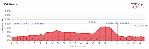 En ese parte final hay dos bucles en torno a Villadiego: el primero de 48 km, al oeste de la localidad, y el segundo, ya más corto, con 23 km al este de la población, incluyendo el repecho de Tobar, que tiene 1,5 km al 5,7% y que se corona a 7,5 km de meta, siendo un buen punto para buscar la sorpresa, con sólo 4,5 km llanos tras el final del descenso. No obstante, lo más probable parece una llegada masiva, aunque ojo de nuevo a la posibilidad de abanicos.