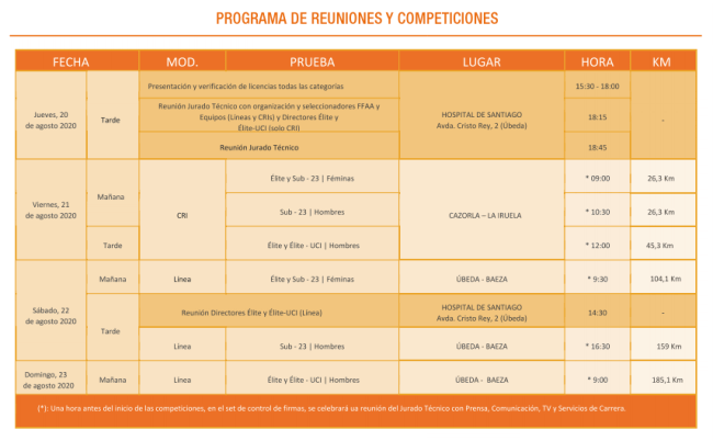 Durante el fin de semana, del 21 al 23 de agosto, se celebra una nueva edición de los Campeonatos de España de Ciclismo en Carretera, en esta ocasión en la provincia de Jaén, con recorridos entre Cazorla y La Iruela en las pruebas contrarreloj y entre las localidades de Úbeda y Baeza en las pruebas en línea, con la buena noticia de que estas últimas tendrán retransmisión en directo por TV, tanto en Eurosport como a través del canal de La Liga Sports.
