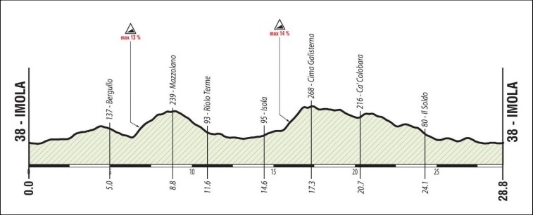 El perfil oficial del circuito, con las duras cotas de Mazzolano y Gallisterna
