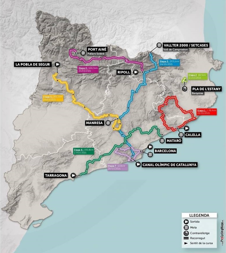 1ª ETAPA (Lunes 22 de marzo): CALELLA – CALELLA (178,5 km). Info en la web oficial (incluye rutómetro)