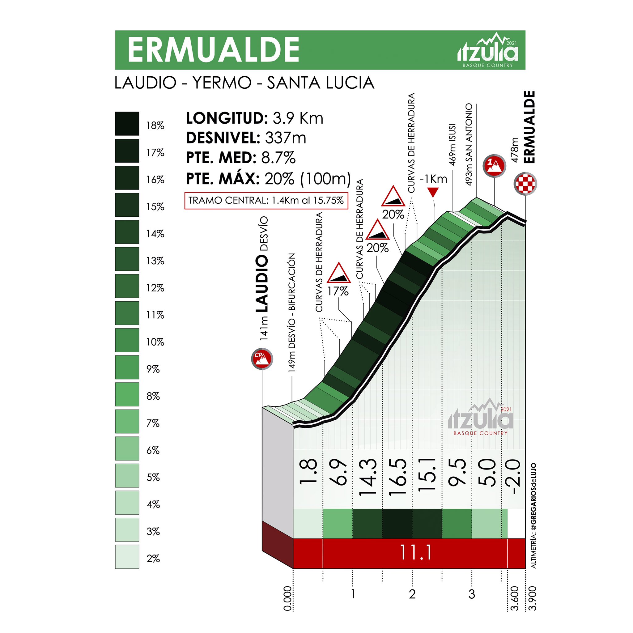 3ª ETAPA (Miércoles 7 Abril):  AMURRIO – ERMUALDE / LAUDIO  (167,7 km).  Info en la web, con rutómetro