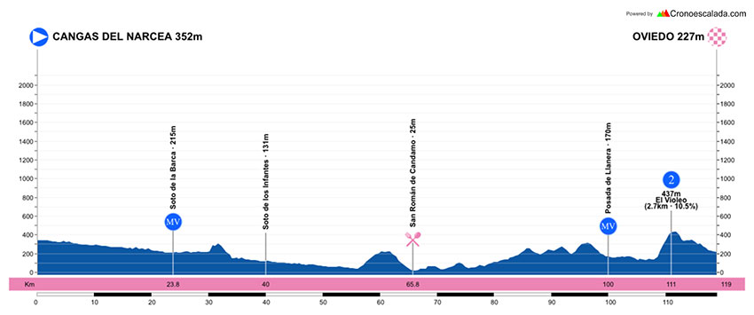 3ª ETAPA (Domingo 2 Mayo): CANGAS DEL NARCEA – OVIEDO (126 km). Info en la web / Rutómetro / Mapa salida – llegada