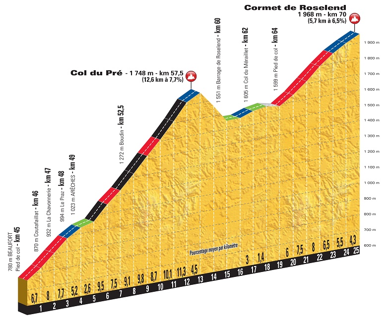 En 2015 se mantuvo el protagonismo de la media montaña, si bien, en lugar de repartir las etapas duras a lo largo de la prueba, como en 2014,estaban concentradas en los últimos días, con 4 jornadas seguidas de montaña, todas con final en alto, llamando también la atención la ausencia de crono individual, siendo sustituída por una crono por equipos … algo similar a lo ocurrido en el Tour de ese año, donde no había CRI larga, aunque el gancho más descarado era la etapa de Pra Loup, idéntica en ambas carreras. En 2016 siguieron los experimentos en el tema de las cronos, con un “prólogo-escalada” como única contrarreloj de la prueba, mientras que la montaña siguió siendo abundante, aunque en etapas cortas y sin grandes colosos, con la excepción de la Madeleine camino de Meribel, echándose en falta alguna jornada para fondistas.