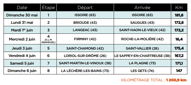 1ª ETAPA (Domingo 30 mayo): ISSOIRE – ISSOIRE (182 km). Info oficial / Últimos km
