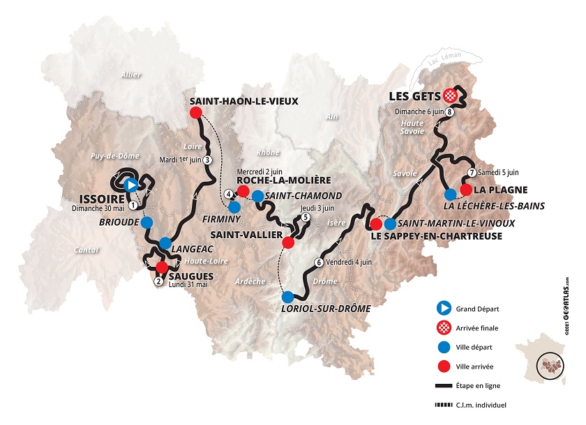 6ª ETAPA (Viernes 4 junio): LORIOL SUR DRÔME – LE SAPPEY EN CHARTREUSE (167 km). Info oficial