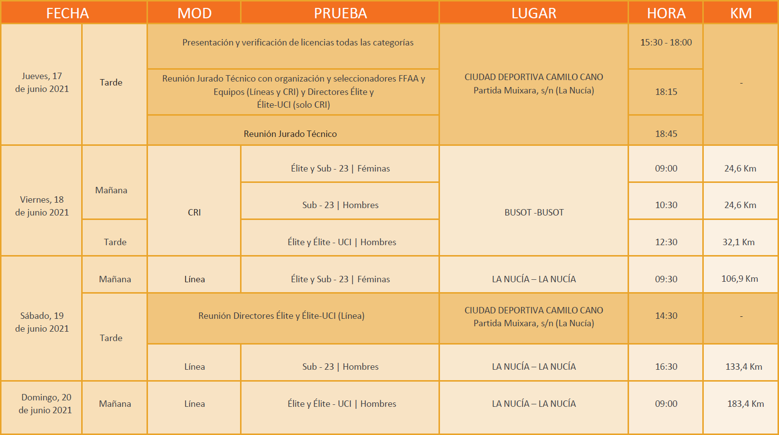 Durante este fin de semana, del 18 al 20 de junio, se está celebrando una nueva edición de los Campeonatos de España de Ciclismo en Carretera, en esta ocasión en la provincia de Alicante, en la Costa Blanca, con Busot albergando las pruebas contrarreloj y La Nucía las prueba en línea, con estas últimas teniendo retransmisión en directo por TV, tanto en Eurosport como en el canal de Youtube de la propia Federación Española de Ciclismo.