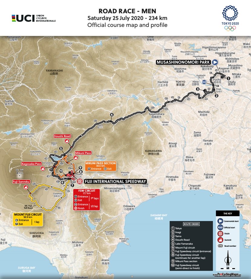 Este sábado 24 de julio comienzan las pruebas de ciclismo en ruta de los Juegos Olímpicos de Tokio 2020*, con la disputa de la carrera masculina entre las 4 y las 10.30 de la mañana (hora española), con un duro recorrido de 234 km y 4800 m de desnivel, mientras que la carrera femenina se celebrará el domingo 25, con un total de 137 km y un trazado también exigente, aunque sin grandes puertos. Las pruebas contrarreloj, tendrán lugar el miércoles 28 de julio, con una vuelta en torno al circuito de «Fuji Speedway» en mujeres (22 km) y dos en hombres (44 km).