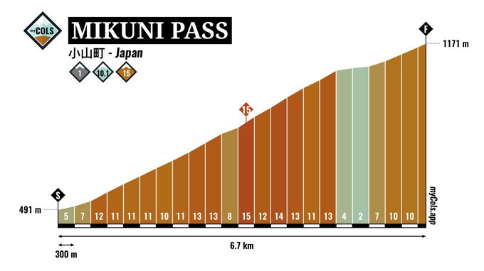 El temido Mikuni Pass, con un tramo de 4,5 km al 12%. Perfil de Mycols.app