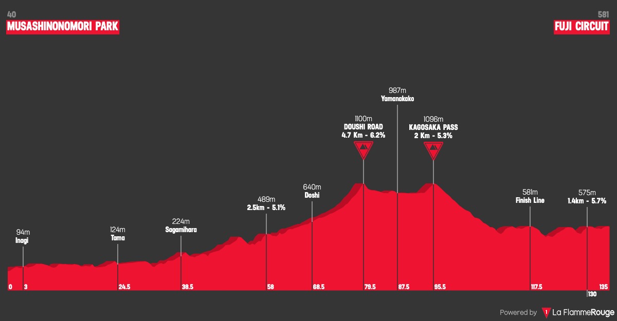 Un perfil detallado de la prueba, destacando el Monte Fuji y Mikuni Pass, por La Flamme Rouge