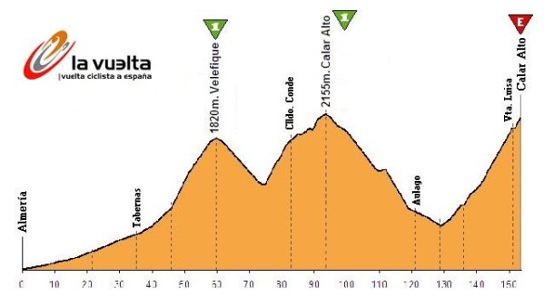 Junto al prólogo inicial, con 7 km y subida al Castillo, hay otras 2 etapas en la provincia, una llana con meta en la capital y otra con el 1er final en alto de la carrera: Picón Blanco, conocido por la Vuelta a Burgos. A continuación la prueba va hacia el sur, con 2 etapas para velocistas, Molina de Aragón, si bien con pequeño repecho final, y Albacete, donde el factor clave es el viento, con posibilidad de abanicos. Después turno para la Comunidad Valenciana, con final muro en Cullera, de unos 2 km al 9% (hasta km 2), y etapa de media montaña estrenando Balcón de Alicante, con 5 puertos antes de la subida final, que tiene los últimos 3,8 km al 10%, acabando tras corto falso llano. La siguiente etapa, con meta en La Manga del Mar Menor, es muy llana, aunque de nuevo ojo al viento, cerrando la 1ª semana con alta montaña en Almería, con puertos de Cuatro Vientos, Venta Luisa (hasta km 30), Castro Filabres y Velefique (meta km 18), subida muy escénica que ya fue llegada en 2009 -> vídeo.