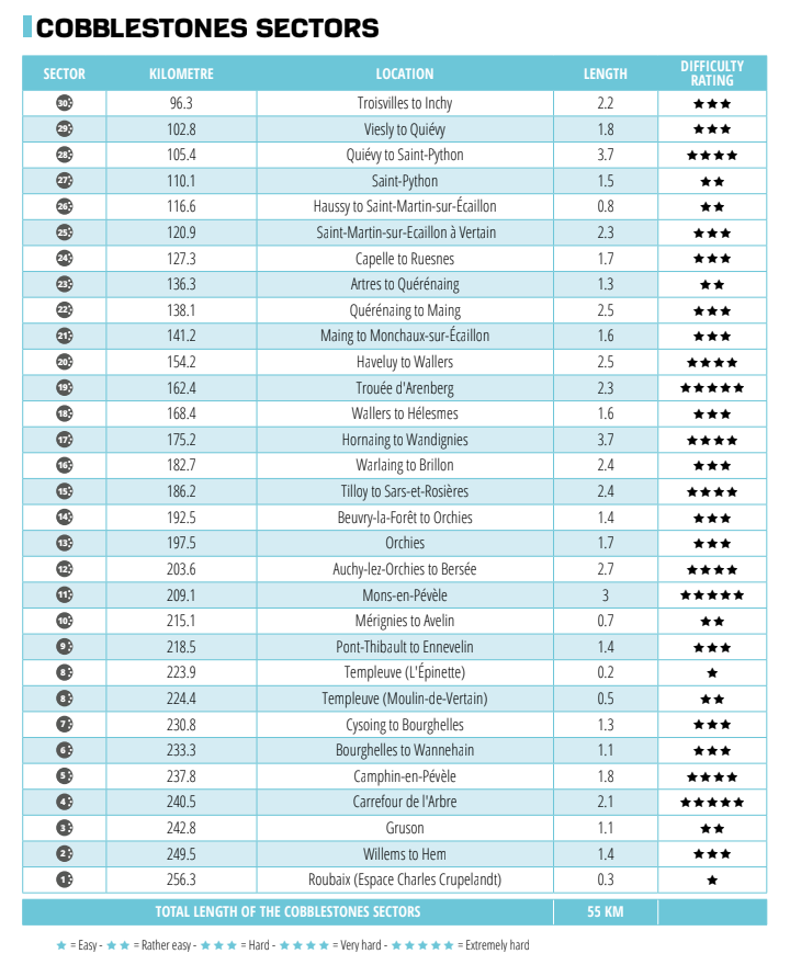 Tramos de pavé y dificultad -> imagen para descargar: