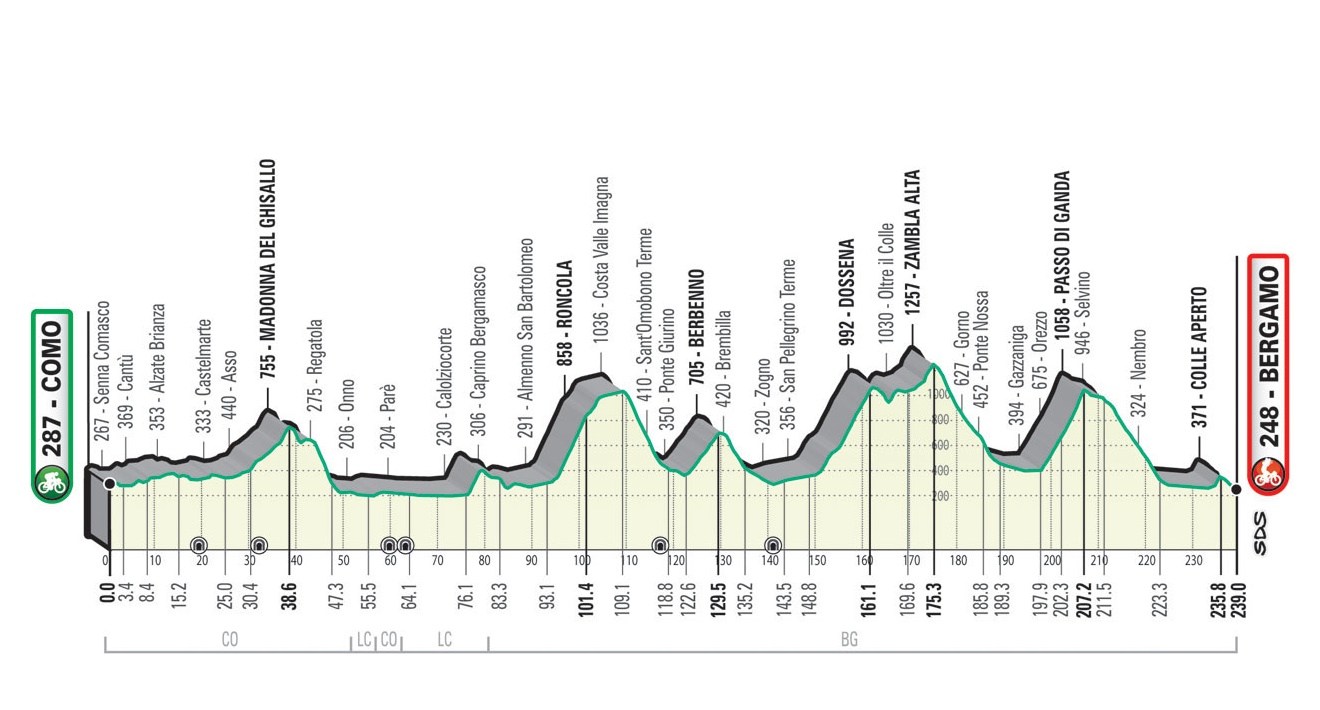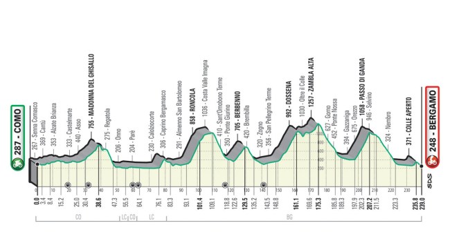 • Zambla Alta (km 175,3):  1257 m – 9,5 km – 3,5 %