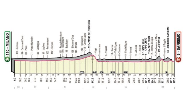 Como decíamos al inicio, tras los cambios obligados de las 2 últimas ediciones este año se recupera el perfil clásico de la prueba desde 1982, con algo más de 290 km e incluyendo el Turchino a mitad de la ruta, con Cipressa + Poggio en la parte final, si bien con la salida neutralizada desde el histórico velódromo Vigorelli de Milán, inaugurado en 1935 y donde se batió múltiples veces el récord de la hora hasta 1958.