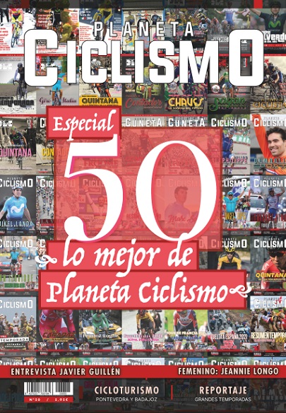 Desde hace unos días ya está disponible en la tienda de la web oficial, y también en los kioskos, el número 50 de la revista Planeta Ciclismo, lo que lo hace muy especial. Para celebrarlo, hay un reportaje donde se han elegido los 50 momentos más destacados de estos años. El segundo punto de interés es una entrevista con Javier Guillen, director de Unipublic, que estuvo en la presentación de la revista, por lo que es un momento ideal para volver a hablar con él.
