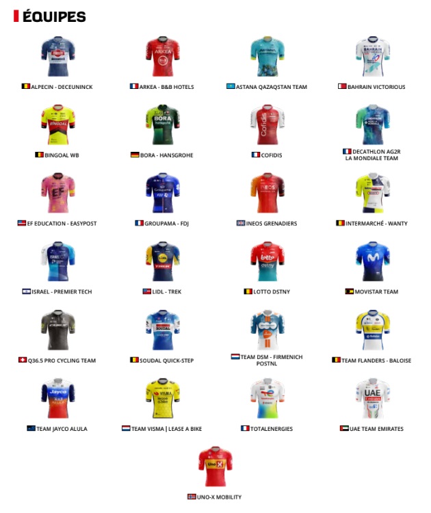 Intentarán ponérselo dificil los Lidl-Treck, con Mads Pedersen, ganador de Gante-Wevelgem, y Jonathan Milan; FDJ, con Stefan Küng top-5 las últimas ediciones; Ineos, con Tom Pidcock, vencedor en junior, y Joshua Tarling; DSM, teniendo como líder a John Degenkolb, ganador en 2015; y UAE, que cuentan con Nils Politt, 2º en 2019 y podio en Flandes, y Tim Wellens. En cuanto a los corredores españoles, destacan Ivan Cortina y Oier Lazkano (Movistar). En total, serán de la partida 25 equipos, los 18 World Team y 7 Pro Team, completando un pelotón de 175 corredores.