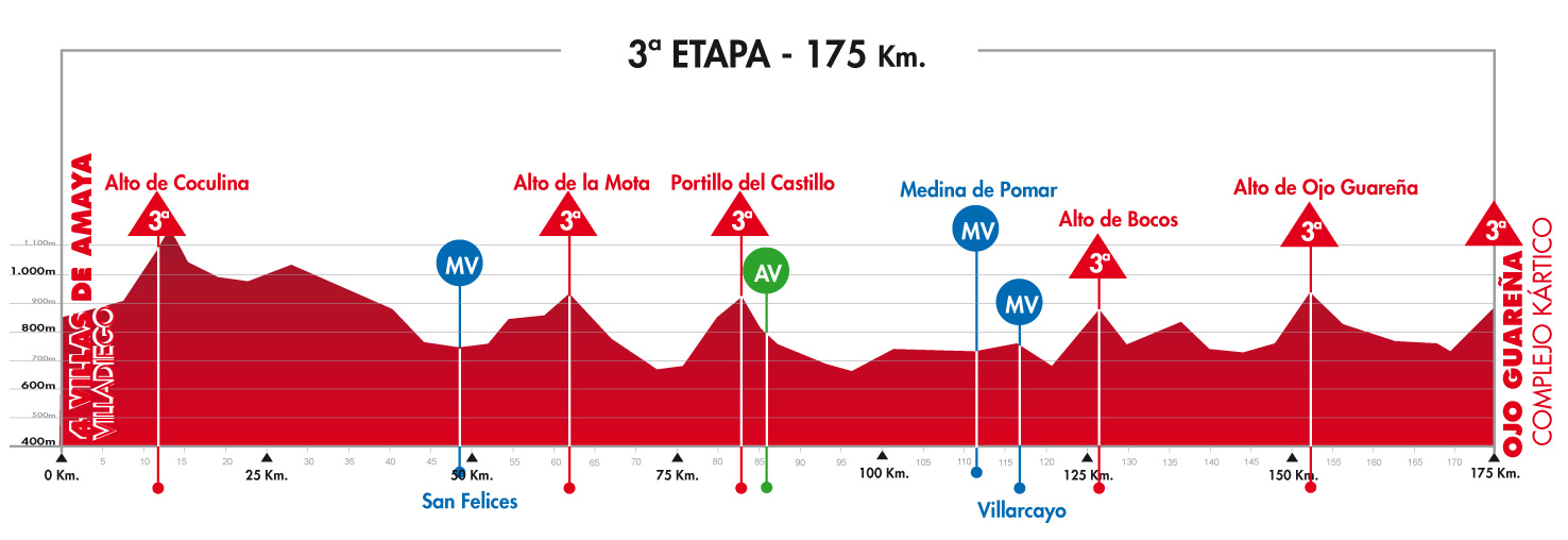 5ª ETAPA (Sábado 9 agosto): FRIAS – CONDADO DE TREVIÑO (156 km). Rutómetro / Últimos km / Salida – Llegada