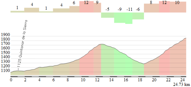 Las Lagunas de Neila por Quintanar y El Collado: 1er paso hasta km 11,6 y subida final hasta km 12,9. Perfil APM