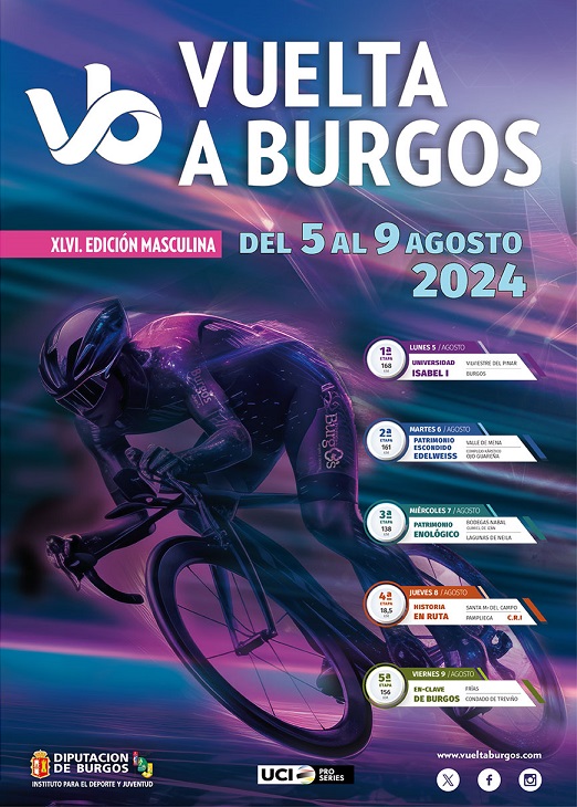 Durante esta semana, del martes 5 al sábado 9 de agosto, se disputa la 46ª edición de la Vuelta Ciclista a Burgos, una de las pruebas por etapas que sin ser World Tour tiene mayor tradición y prestigio de las que se celebran en España. Y este año con la participación más numerosa desde 2021, incluyendo a 20 equipos, y un recorrido con varias novedades, sobre todo la recuperación de la CRI, que junto con las clásica jornada de las Lagunas de Neila serán las etapas a priori clave para la general, máxime al haberse suprimido Picón Blanco.