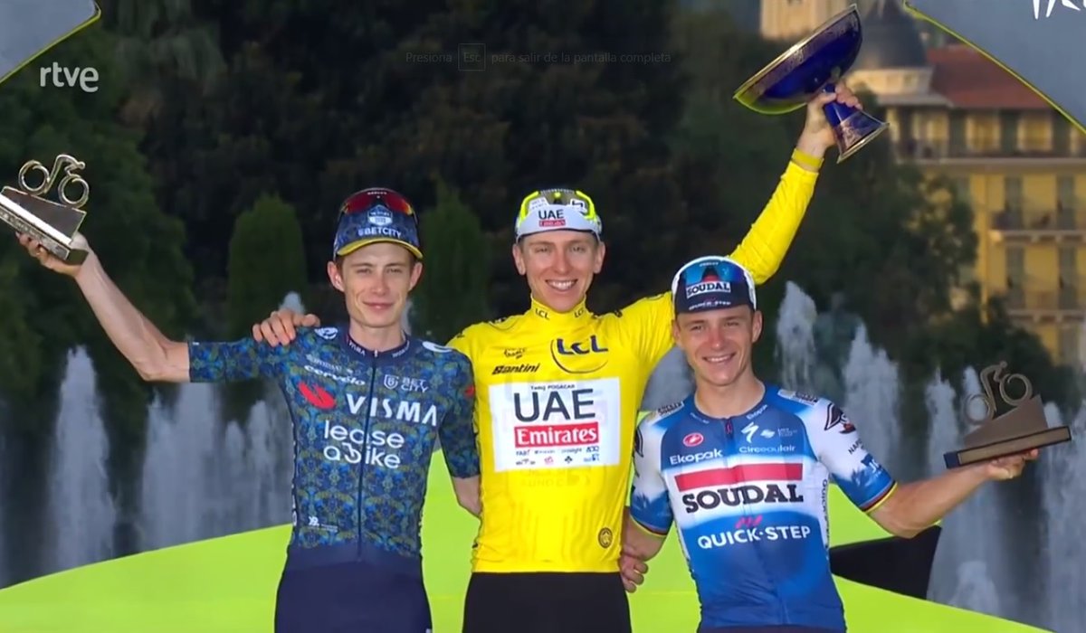 El podio de 2024: Pogacar, Vingegaard y Evenepoel. Click para ver un hilo con los ganadores de todas las clasificaciones