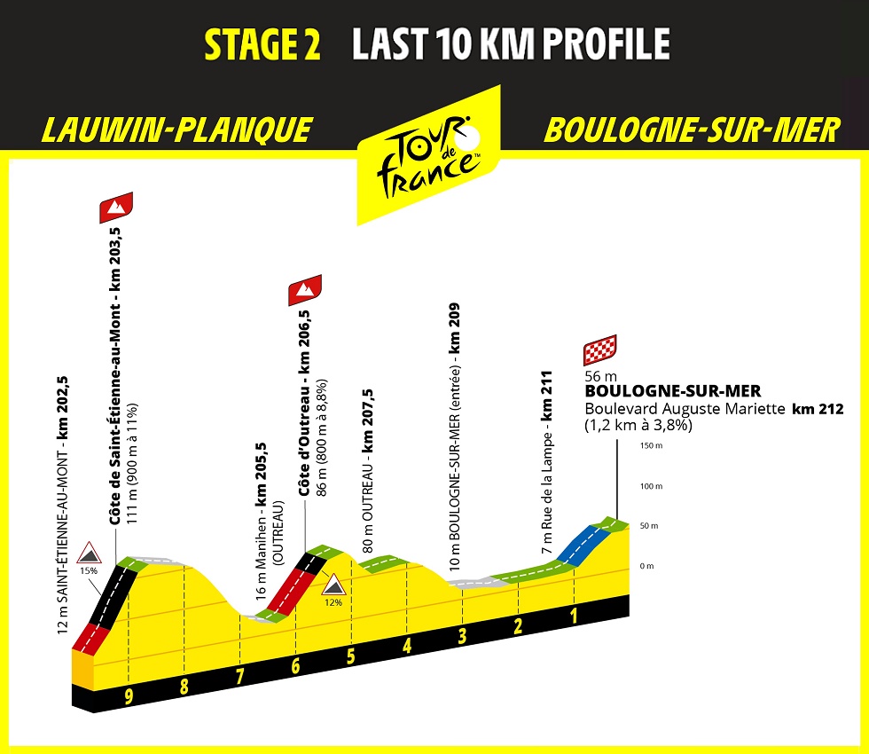 En cuanto al recorrido, como decíamos al inicio se desarrolla íntegramente en Francia, algo muy poco habitual los últimos años, con salida desde Lille, en la punta norte del país, con una 1ª jornada básicamente llana, aunque con pequeñas cotas, seguida por una etapa quebrada en Boulogne sur Mer (2ª), con meta en repecho -> parte final, y otra etapa bastante llana camino de Dunkerque (3ª), aunque ojo al viento. Tras esta jornada, festival de etapas tipo clásica, aunque siempre sobre asfalto, empezando por la jornada de Rouen (4ª), con 5 cotas en los últimos 50 km -> tramo final, si bien con la crono individual en torno a Caen (5ª) intercalada, en un día clave para la generral, aunque siendo la única crono llana es demasiado corta: 33 km.