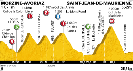 La etapa siguiente, con casi 130 km camino de La Plagne (19ª), tiene una estructura muy similar aunque siendo más corta, incluyendo el Col des Saisies por Hery sur Ugine, marcado como 2 puertos, y Cormet de Roselend por Col du Pré, también «dividido» en 2, destacando el duro final de Pré, antes del peligroso descenso de Roselend y la subida final a La Plagne, sin rampas extremas pero muy constante, para un total de 19 km al 7,2%, pudiendo hacer mucho daño si hay buen ritmo desde la base, como en la escabechina de Indurain en 1995 -> vídeo, persiguiendo a un gran Zulle. No obstante, habiendo ya otros 4 HC finales, habría sido más lógico un final tras descenso o subida más tendida.