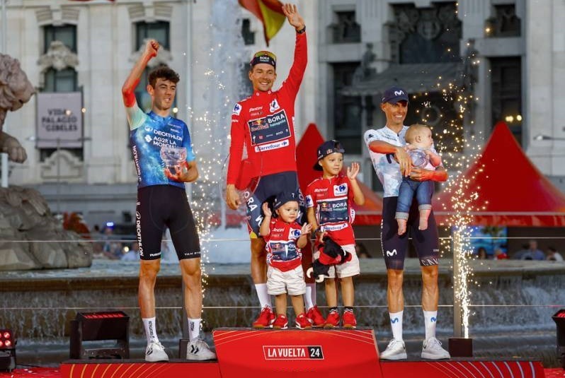 El podio de 2024: Roglic, O’Connor y Mas. Foto Sprint Cycling, click ver hilo con top-10 y las demás clasificaciones