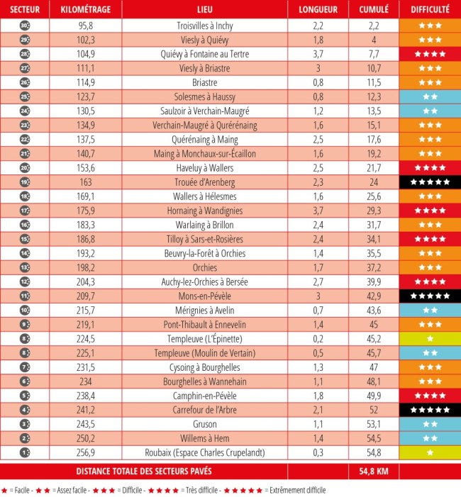 Aunque ya ocurrió los últimos años, señalar que los organizadores de la carrera, A.S.O., que son los mismo del Tour de Francia, no han publicado el perfil oficial de la carrera, ni en la web ni en el libro de ruta, lo que resulta incomprensible. En sentido contrario, destacar el fabuloso trabajo que hace la asociación de “Les Amis de Paris-Roubaix” -> web / twitter, cuya labor desinteresada cuidando los tramos de adoquín, limpiándolos, eliminando la maleza y renovando el pavé cuando se encuentra en mal estado, es vital para que la carrera se pueda seguir disputando tal y como la conocemos.